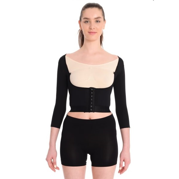 این با پارچه ی تخصصی آئورالیپو ساخته شده و برای استفاده پس از عمل های لیپوساکشن یا برداشتن چربی در نواحی شانه و بازو طراحی شده است. این گن با با ترکیب فناوری فشرده سازی پیشرفته و طراحی ارگونومیک به تسریع روند ترمیم بافت ها کمک میکند.