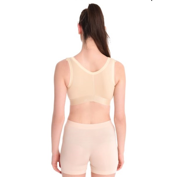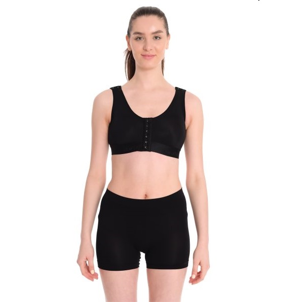 این گن سینه پس از جراحی از مواد دو لایه با کیفیت بالا، نرم و بسیار انعطافپذیر ساخته شده است تا حداکثر راحتی و پشتیبانی را بعد از عملهای بزرگ کردن یا کوچک کردن سینه فراهم کند. طراحی دقیق آن به گونهای است که میتوان با سه قلاب قابل تنظیم در جلو، سایز و فشار مناسب را تنظیم کرد.